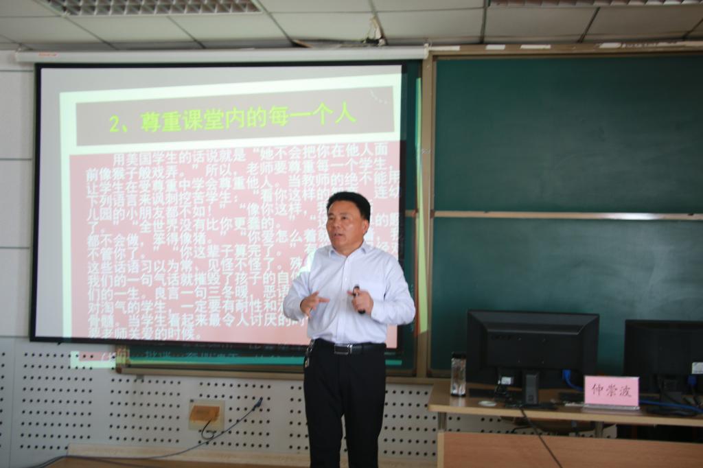 仲校长诙谐幽默的报告方式和妙语连珠的古文引用,引得学生和老师们的阵阵掌声,使同学们在轻松愉悦的氛围中体会到了如何做一名受学生欢迎的老师。仲校长躬身于实践,在实践中发现问题并巧妙地解决问题,为广泛在校师生提供良好的平台和发展的机会。仲校长以恢弘的教育视野、深厚的学术素养,为我们展现了教师和学生良好互动的多彩图景;其辩证缜密的教育管理思维、融会贯通的深远眼光,使我们深受教益。