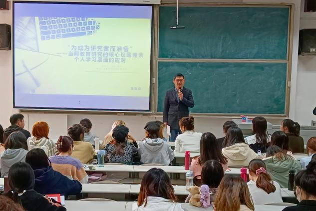学术共同体的李凯副教授在综合楼101教室为2019级全体学生带来了一场题为《为成为研究者而准备:当前教育研究的核心议题兼谈个人学习层面的应对》的学术报告。周日下午的综合楼101教室,座无虚席。报告开始前,女子足球直播