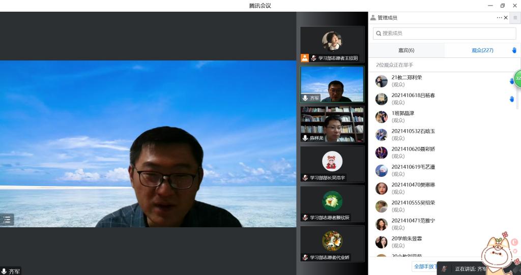 报告会上,陈祥龙老师以《论语》首章为例,谈论对经典阅读的感受,与大家分享了经典阅读中“博”与“约”、“逆流而上”与“顺流而下”、“问题导向”与“学科立场”三个问题,并对《论语》中的学文与学道、时时与适时做了区分。最后,陈祥龙博士强调,教育是缓解焦虑最好的手段,有对学习的志向就会克制外界的吸引,保持问题意识是做学术研究的最基本要求。