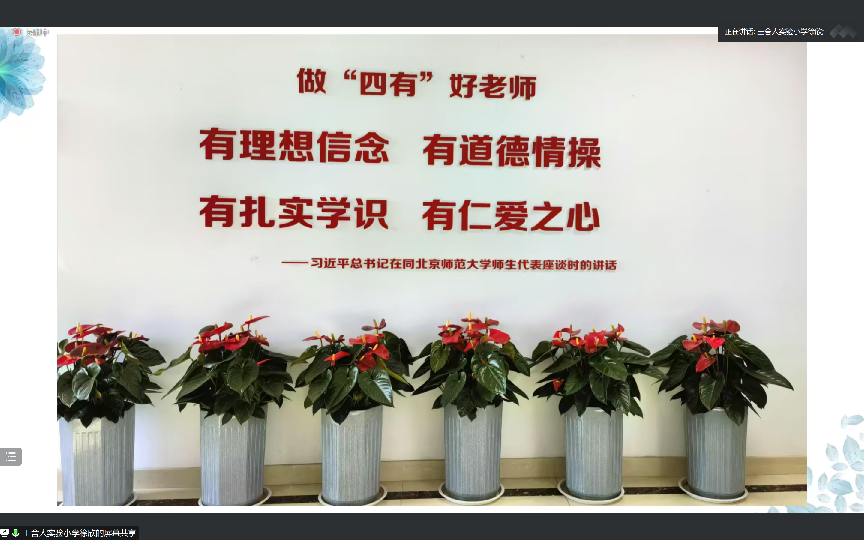 徐欣校长首先从个人的教育事业历程中讲述她对教育工作的认识与情感,她强调小学老师应当全面发展,厚实专业底蕴,凝聚专业智慧,做好学校哪里需要就投身哪个学科教育教学的准备。随后,徐欣校长在报告中展示了王舍人实验小学的综合实践课程成果,介绍了如何进行课题引领,以研促教,在课程中实现五育融合,赋能学生成长。