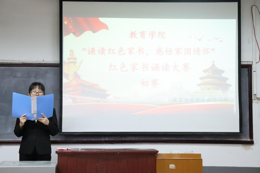 比赛中,各参赛选手紧扣“诵读红色家书,牢记时代使命”这一主题 ,激情诵读了来自革命年代的一封封饱含情感的书信,声情并茂地诠释了革命战士和中共党员劝学励志、爱国忧民、思念家乡的情感。一段段刻骨铭心的事迹,一封封经典红色家书的诵读,一声声发自肺腑的深切感悟,带领大家仿佛回到那个烽火硝烟、坎坷动荡的革命战争年代,生动展现了革命者不畏困苦、坚持斗争的革命精神,比赛现场掌声不断。最终任伟佳、许腾月、崔秀茹、迟橙通过初赛进入校级比赛当中。