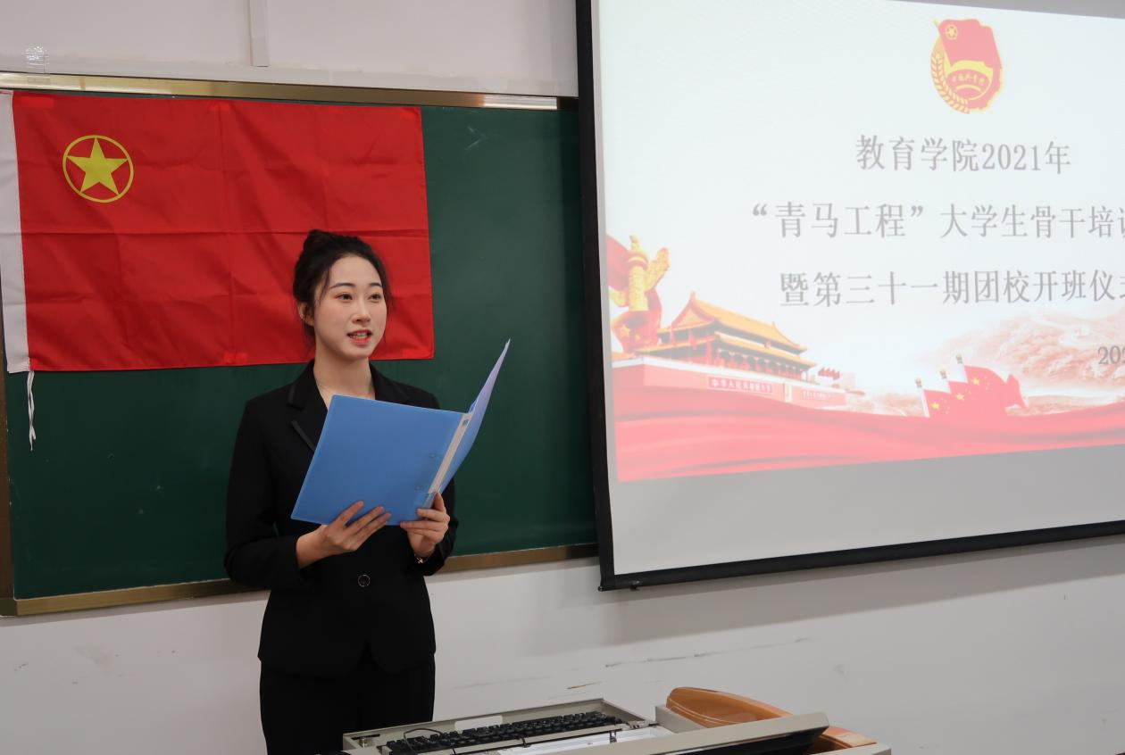 “青马工程”大学生骨干培训班暨第三十一期团校培训方案。最后,学员代表迟橙同学发言。迟橙表示作为“青马”班学员要以身作则,在深化理论学习中提高思想认识,在参与社会实践中坚定理想信念,认真学习,严守纪律,保质保量完成培训班各项任务。开班仪式结束后,孙超书记作了题为“深入学习宣传贯彻党的十九届六中全会精神”的首场报告。