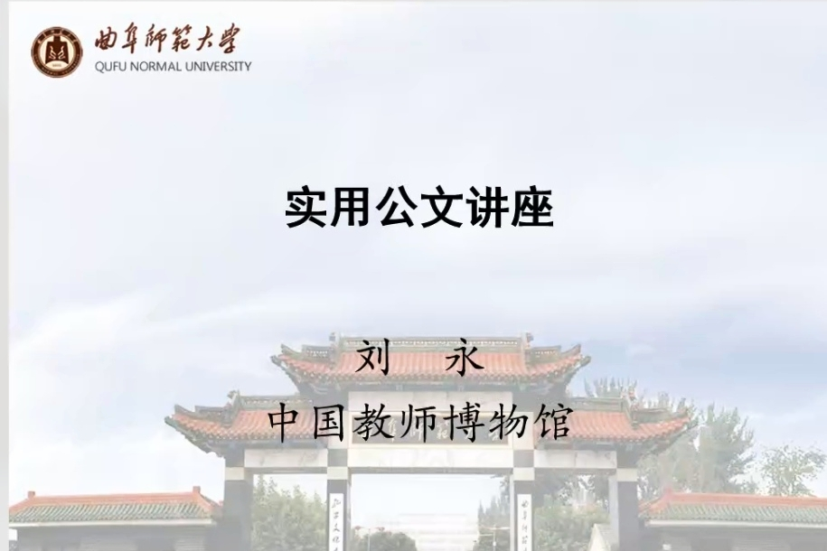 报告中,刘永老师从公文基本知识、常用应用性公文、公文写作特点及注意事项三方面进行讲解。他结合具体实例,讲解详尽生动。他认为,写作公文时有气则有势,有识则有度,有情则有韵,有趣则有味;公文具有法律效应,更要注意语言的准确平实、简明庄重。