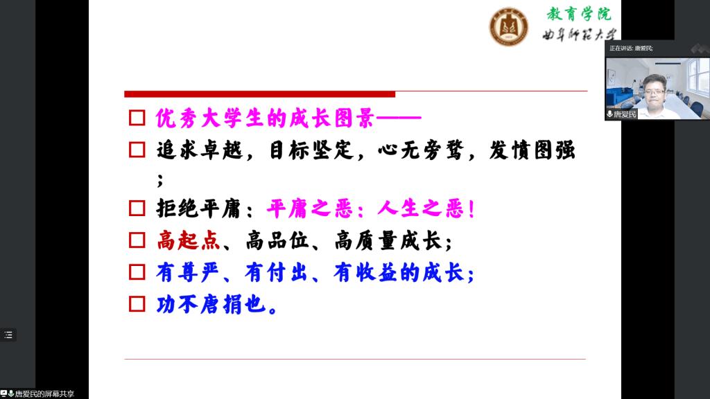 唐院长在课堂中还谈到,扁平化的生活绝不是青年大学生的生活方式,拒绝平庸,向上、向前、向高处走应是每个青年学生的追求。最后,唐院长对新生提出了“四个期望”,即“追求卓越、目标坚定、心无旁骛、发愤图强”,希望每一位学子都能在女子足球直播 实现高品位、高质量的成长。