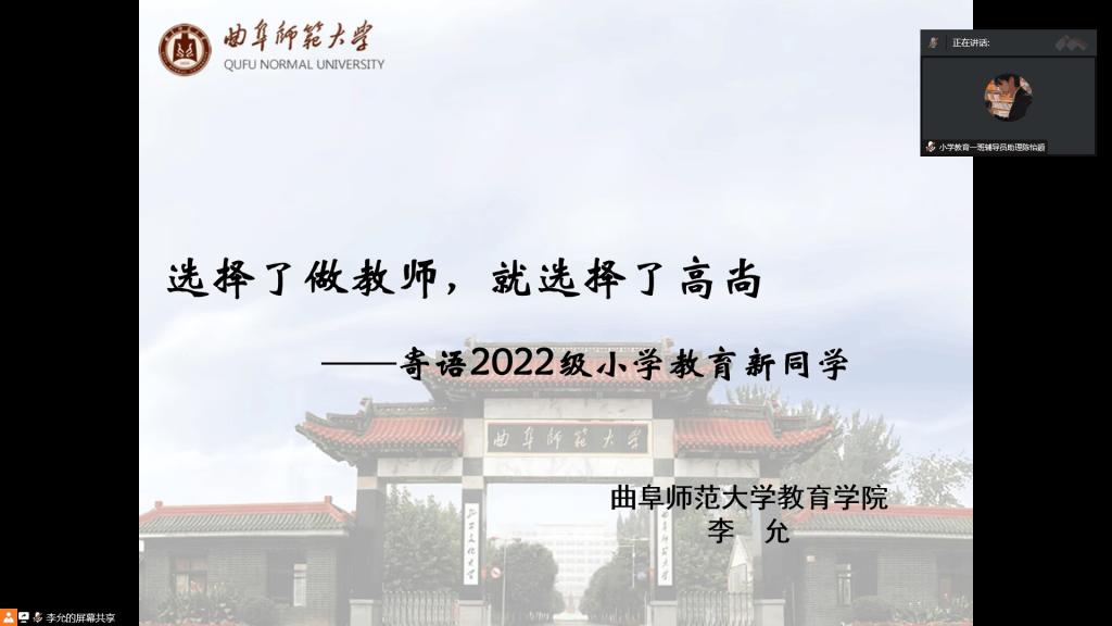 女子足球直播 讯(通讯员:邓玉  林安姝  杜昱琪)9月16日,女子足球直播 2022级新生入学教育之专业导航教育——职业规划与个人成长报告会顺利举行。女子足球直播 副院长刘亭亭老师、小学教育系李允教授、学前教育系主任闫春梅老师分别为2022级教育学、小学教育、学前教育专业新生作线上职业规划与个人成长报告,2022级全体本科新生参会。