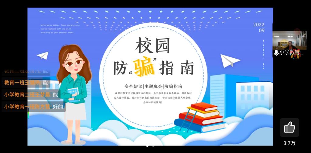 本次安全教育主题班会,还对广大新生开展了疫情防控形势和日常防控教育,有利于新生增强安全防范意识,提高网络诈骗鉴别能力,提高防范校园暴力的意识,自觉配合学校疫情防控管理,为构建安全稳定的校园环境奠定了良好基础。