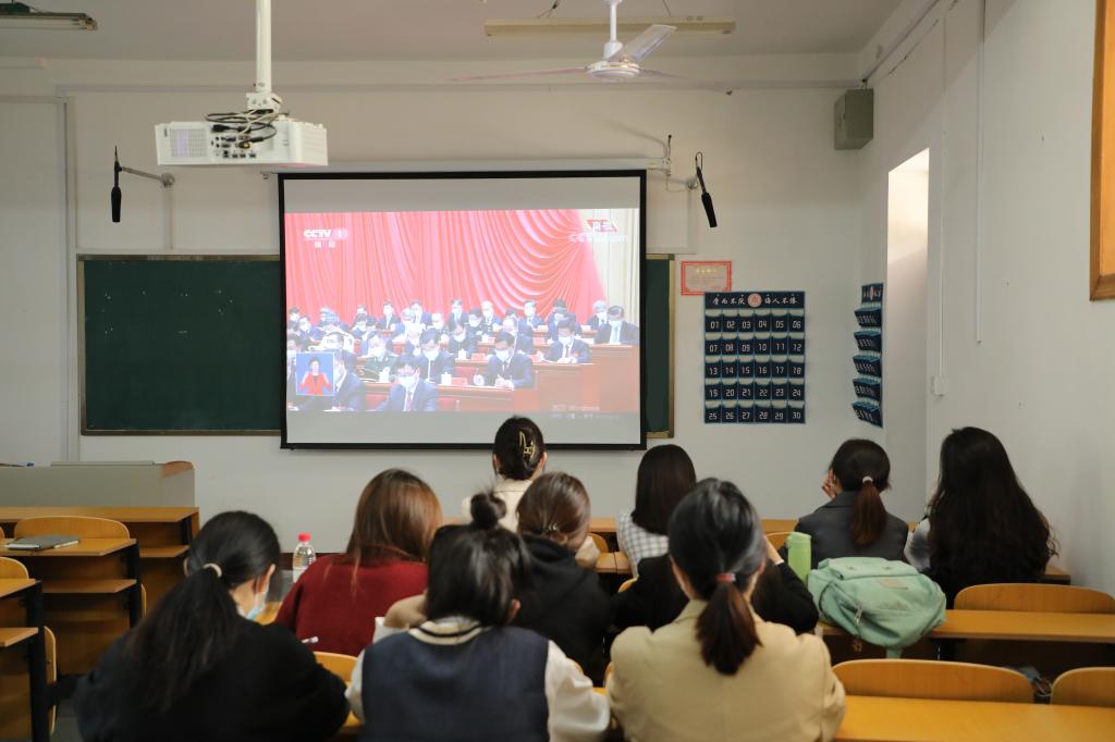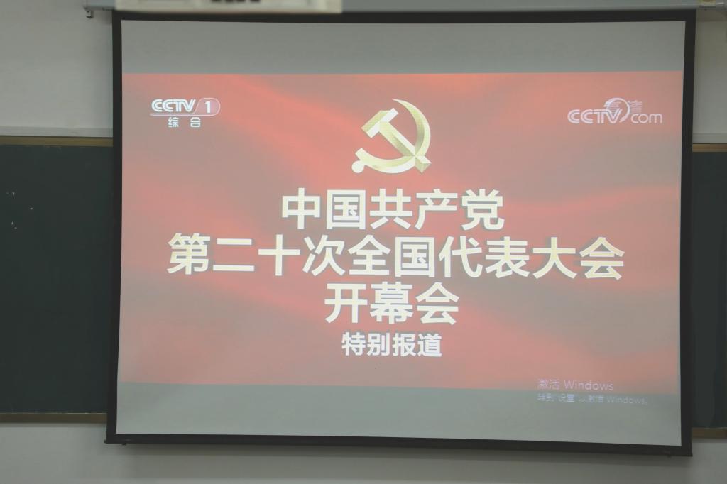 高度重视,积极组织团委、学生会学生干部于院楼106教室集体收听收看党的二十大开幕会盛况。