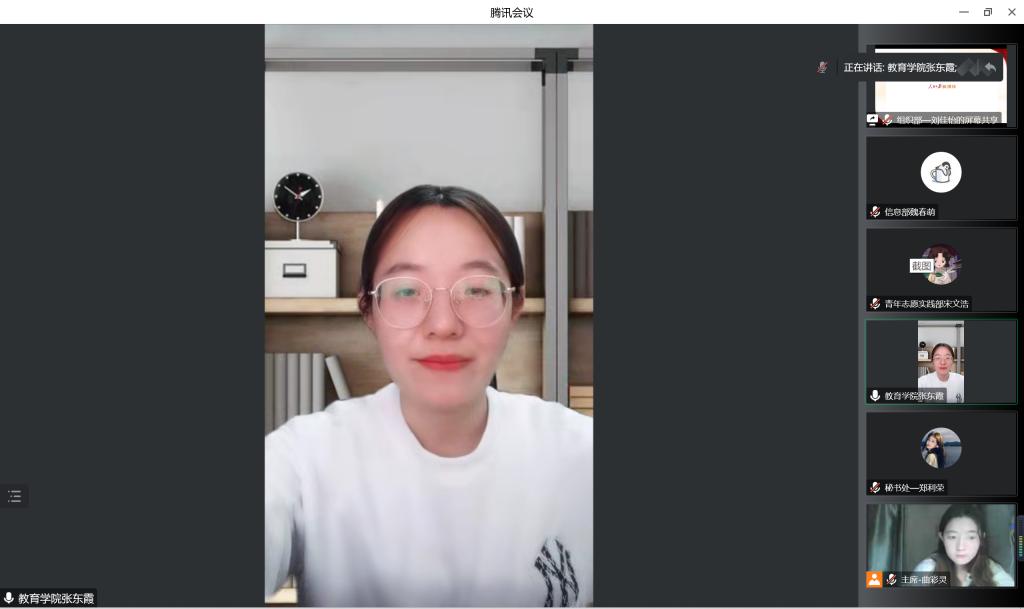 学团工作实际,为院团委学生会下一步工作开展和广大学生干部的自身发展提出了指导性意见和明确要求。她指出,团委学生会各部门之间要形成有机整体,互帮互助、共同进步。她强调,作为新时代学生干部,要自觉提高政治站位,坚定理想信念,守好工作底线,杜绝触碰红线;要端正工作态度,理清工作思路,主动担当作为,展现良好的精神面貌。张老师还给学生干部提出两点要求:第一,要做到学习工作两不误,争先创优,全面提高自身综合素质;第二,要做好信息员工作,用心倾听同学呼声,充分了解同学诉求,以更强的责任感和使命感践行学生干部的初心与使命。