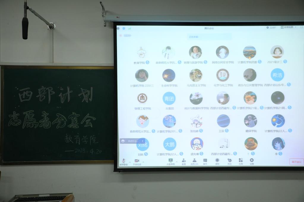 本次会议邀请到的往届西部计划志愿者向大家介绍了近年来曲阜师范大学大学生志愿者在支援西部工作中的相关情况,并结合自身经历就大学生西部计划志愿者选拔政策、网上报名流程、志愿者选拔标准等进行了宣讲和要点解读。他们鼓励同学们要积极响应团中央“到西部去、到基层去、到祖国和人民最需要的地方去"的伟大号召,报名参加大学生志愿者服务西部计划,带着“奉献、友爱、互助、进步”的志愿精神开启志愿征途,实现自己的人生价值和青春理想。