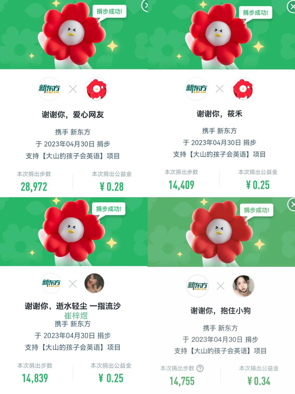 本次五四青年节特别活动中,同学们积极踊跃报名。本次活动将线下运动与线上打卡相结合,参赛人员注册登录微信小程序“一块走”,每日步数达标后可捐赠步数获得爱心值。在保证安全的同时坚持运动,并记录每天的运动步数与运动照片,在锻炼中进一步体悟“五四”精神,做到内化于心、外化于行,展现新时代青年学子奋发向上的蓬勃朝气。