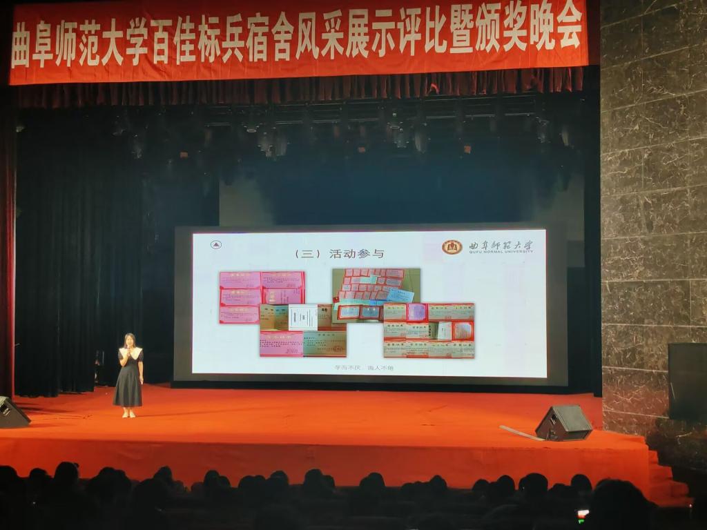 在学校隆重举办的“百佳标兵宿舍风采展示评比暨颁奖晚会”活动现场,2021级教育学一班西公寓6#613宿舍同学通过PPT展示了宿舍良好的生活学习氛围、介绍了宿舍每一位同学精彩的大学生活和取得的优异成绩,并为师生奉上了由宿舍同学精心编排、自导自演的光影戏——《我们的大学》,以别出心裁的形式将大学四年融汇在一场光影戏当中,惟妙惟肖地展现出室友之间浓厚的情谊和曲园学子青春向上、团结进取、追求卓越的优良品格。