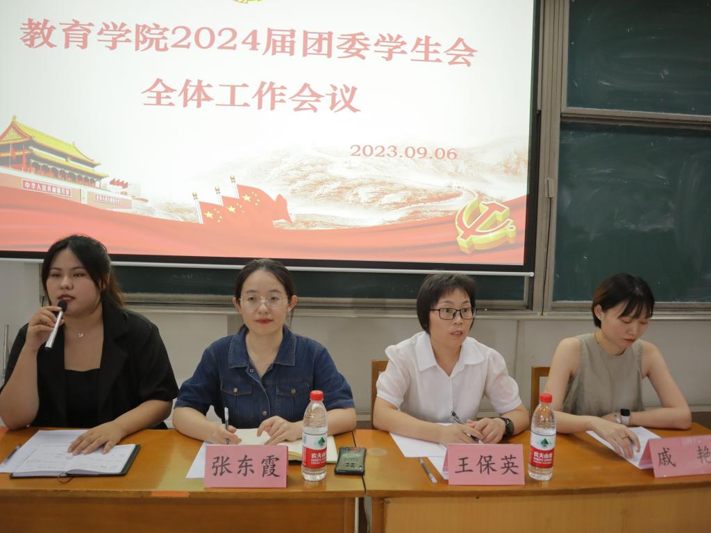 辅导员张东霞、王保英、戚艳出席会议,2024届团委学生会全体成员参加会议。会议由学生会主席陈怡颖主持。