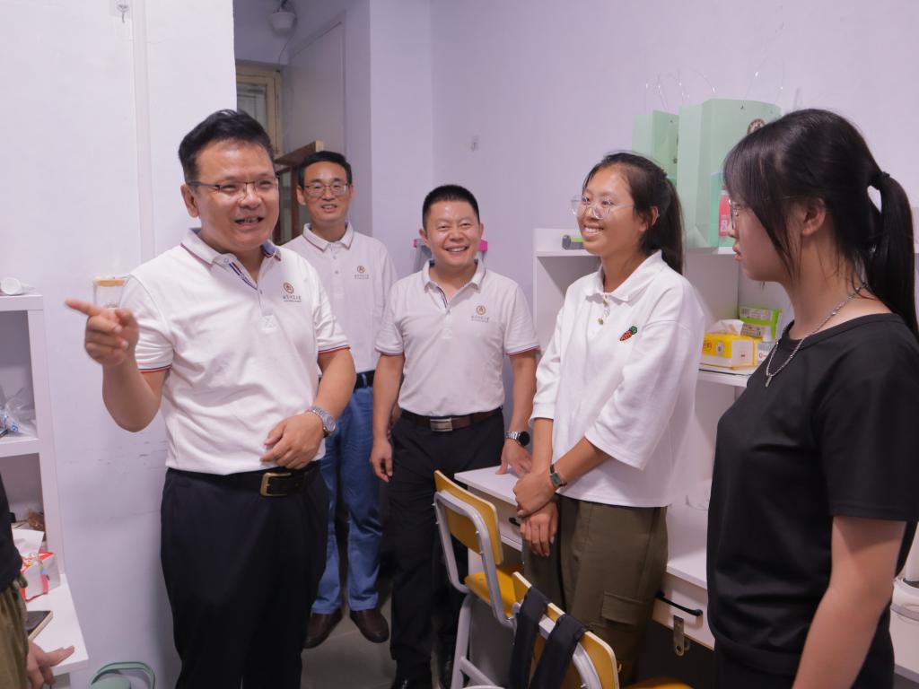 女子足球直播 领导还走进宿舍,与新生及家长亲切交谈,对各位新生的到来表示欢迎,希望同学们尽快转变角色、适应新环境,开启新的奋斗历程,并勉励他们珍惜光阴、潜心读书、乐学笃行,争做一名新时代“四有”好老师;同时感谢家长对学校和女子足球直播 的信任,学校女子足球直播 会竭尽所能为同学们的成长成才提供优质的教育资源和成长环境。