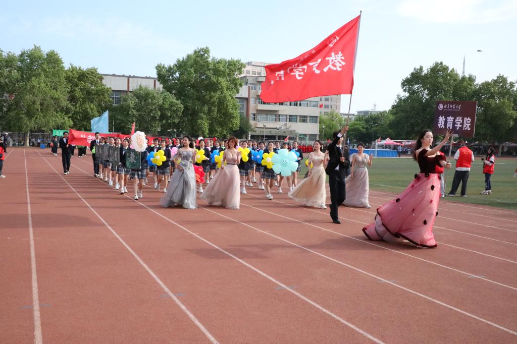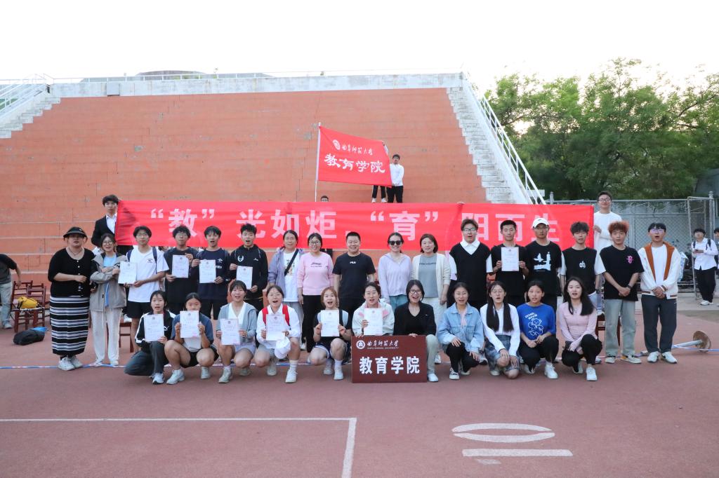学子的活力与激情。他们以出色的表现赢得了观众的尊重和掌声。现场气氛热烈,欢呼声、加油声、呐喊声此起彼伏,每一声呐喊助威都展示着教院学子团结一心、勇往直前的精神风貌。