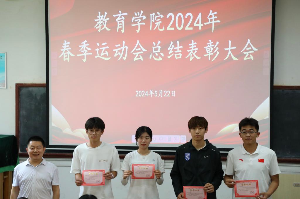 颁奖仪式上,与会领导老师为运动会上表现突出的优秀教练员、运动员和服务保障人员颁发荣誉证书。