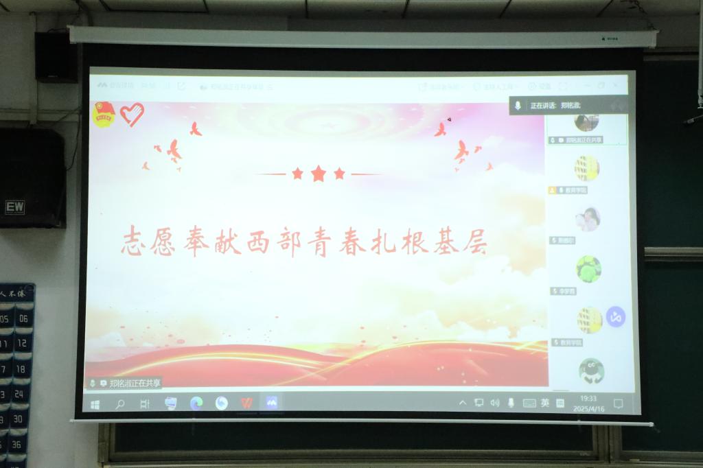 往届西部计划志愿者借助PPT向大家详细解读西部计划不同地区的政策待遇、工作内容、生活情况等关键内容,并结合自身扎根基层、服务群众的奋斗故事,鼓励同学们将个人成长融入西部基层实践。宣讲会结束后,同学们纷纷表示,将积极响应号召,踊跃投身西部计划,在基层的磨砺中增长才干,为国家乡村振兴贡献青春力量,让青春在西部的土地上绚丽绽放。