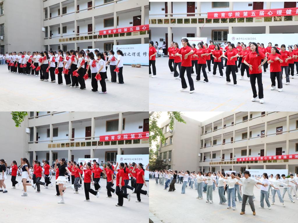第五届心理健康操展演在教育楼前顺利举办。教育学部党委副书记孙超、学校心理健康教育与咨询中心主任侯萍萍和女子足球直播