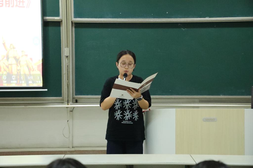 会上,组织部部长王艺静带领全体成员共同学习了习近平总书记的重要文章《弘扬伟大抗战精神,向着中华民族伟大复兴的光辉彼岸奋勇前进》。她强调抗战推动了民族的觉醒与团结,号召同学们铭记历史、捍卫和平,积极践行“三个必胜”的真理。