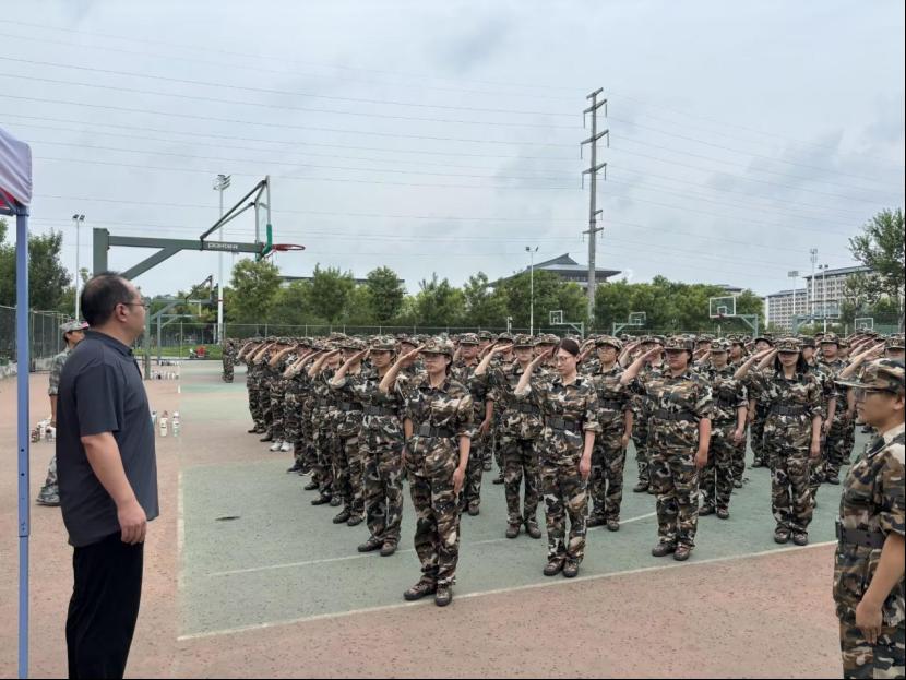 尹树林查看了列队训练成效,关切询问新生适应情况,并对承训教官致以诚挚谢意。他高度肯定了同学们的坚强意志,强调军训是增强集体荣誉感、培养良好行为习惯的有效途径,希望同学们珍惜在军训中强健体魄、锤炼意志的宝贵经历,以昂扬的斗志完成军训任务,为大学生活奏响奋斗新篇章。