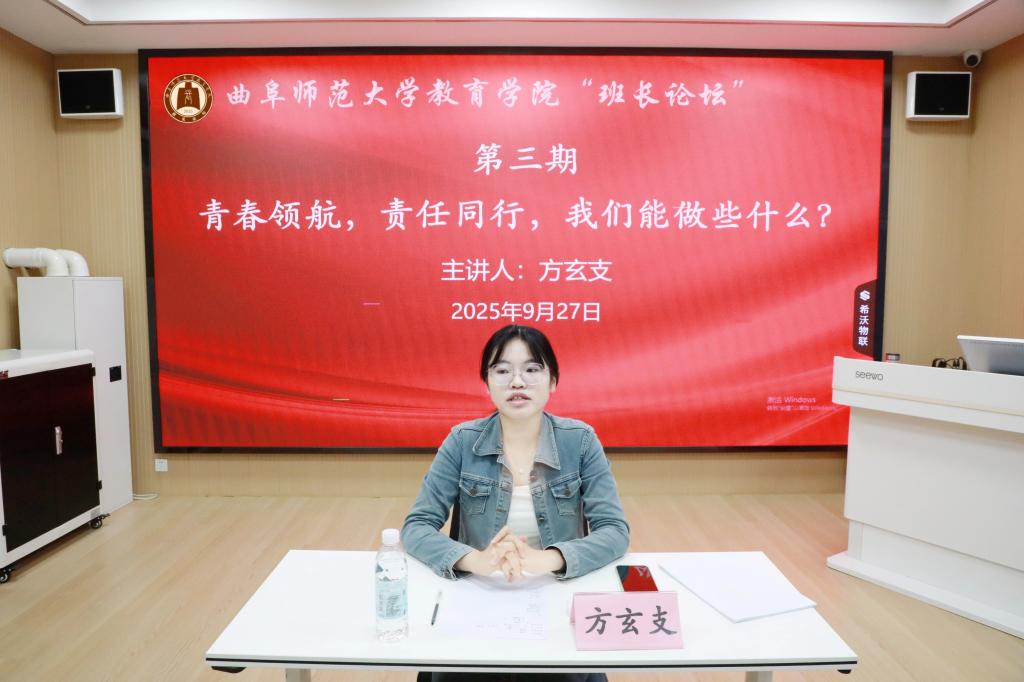 “班长论坛”第三期在教育南楼125会议室顺利举办。本次活动由2025届学生会副主席方玄支担任主讲,女子足球直播