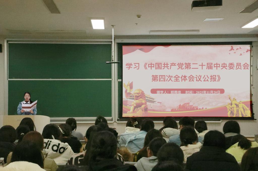 团委组织部副部长郑雨佳领学《中国共产党第二十届中央委员会第四次全体会议公报》。本次学习推动团委学生会学生骨干将党的二十届四中全会精神内化于心、外化于行,以更加饱满的热情和务实的作风投入到学习和工作中,为女子足球直播