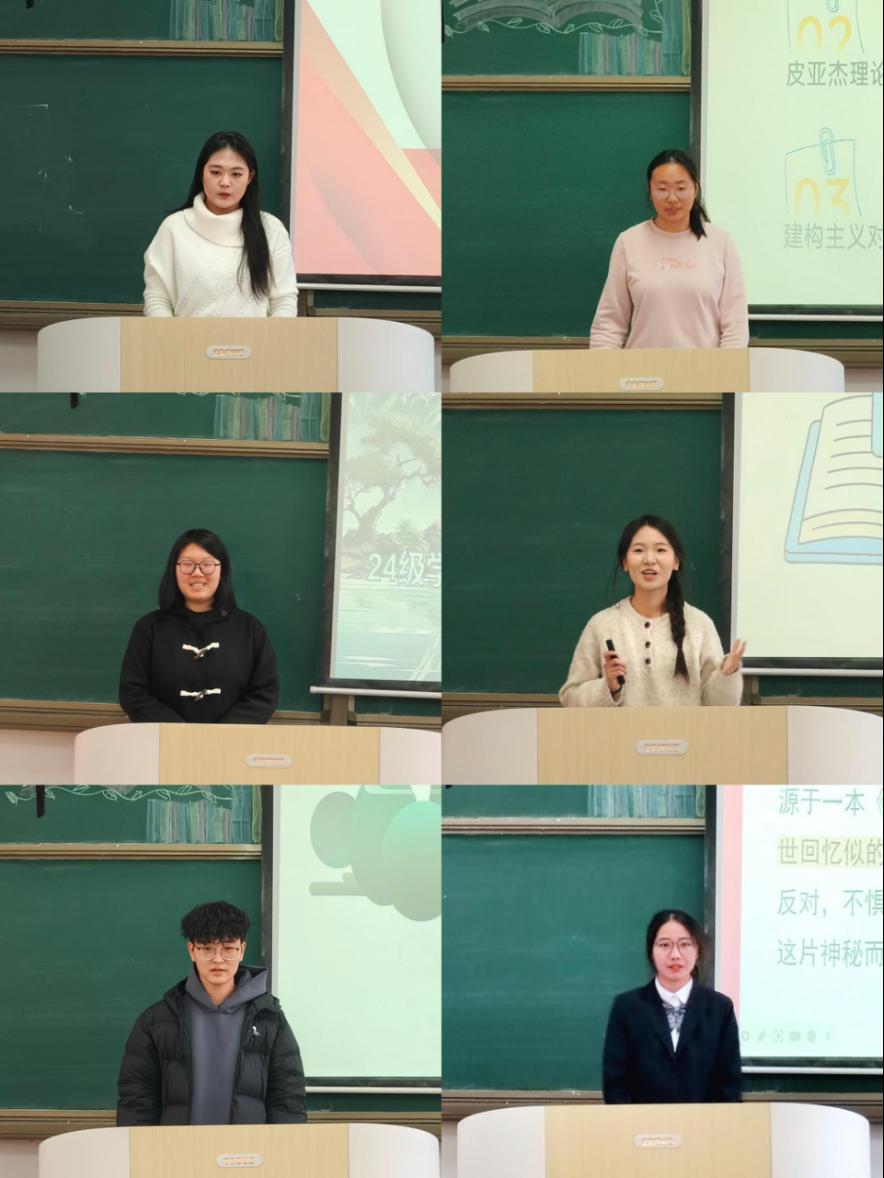 活动现场气氛热烈,参赛选手借助精心制作的PPT,用流畅的语言、清晰的逻辑与生动的案例展开读书分享,充分展现出对教育理论的深刻思考与实践感悟。展示结束后,选手们聚焦文本解读、育人理念落地性、教学场景适配度等维度开展自评,主动梳理分享亮点并提炼经验方法,彰显出教育学子勤于思考、善于总结、勇于反思的良好风貌。