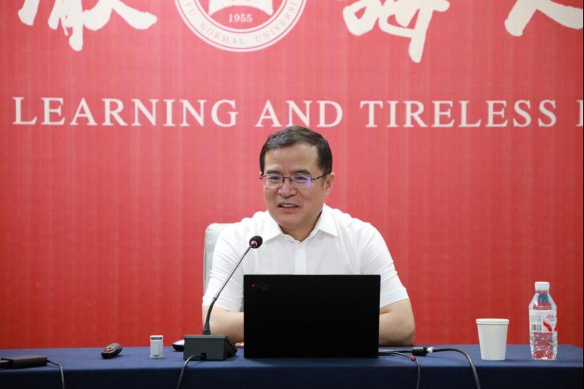 7月7日上午,教育学部2025年“暑期教师专业发展周”活动在科技楼二楼南会议室正式启动。曲阜师范大学党委副书记、校长张洪海在开幕式致辞中指出,教育学部近年来坚守教师教育底色与传统文化特色,作为全省首个教育博士授权单位和省“811学科”建设单位,在学科建设和科研创新方面取得显著成效。他强调,要推进资源整合和机制创新,发挥协同优势,增强学科发展动能。本次教师专业发展周是推动教师成长的重要举措,要逐步形成常态机制。希望各位专家倾囊相授,助力学部教师拓宽视野、提升能力,共同推动教育学科建设迈上新台阶。
