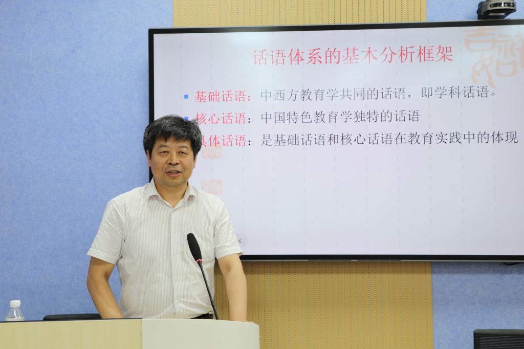 交流互动环节,冯建军教授同与会教师就“办好人民满意的教育”“教育学学术话语与实践话语、政治话语的关系”“教育学自主知识体系与话语体系的关联”等议题展开深入探讨。