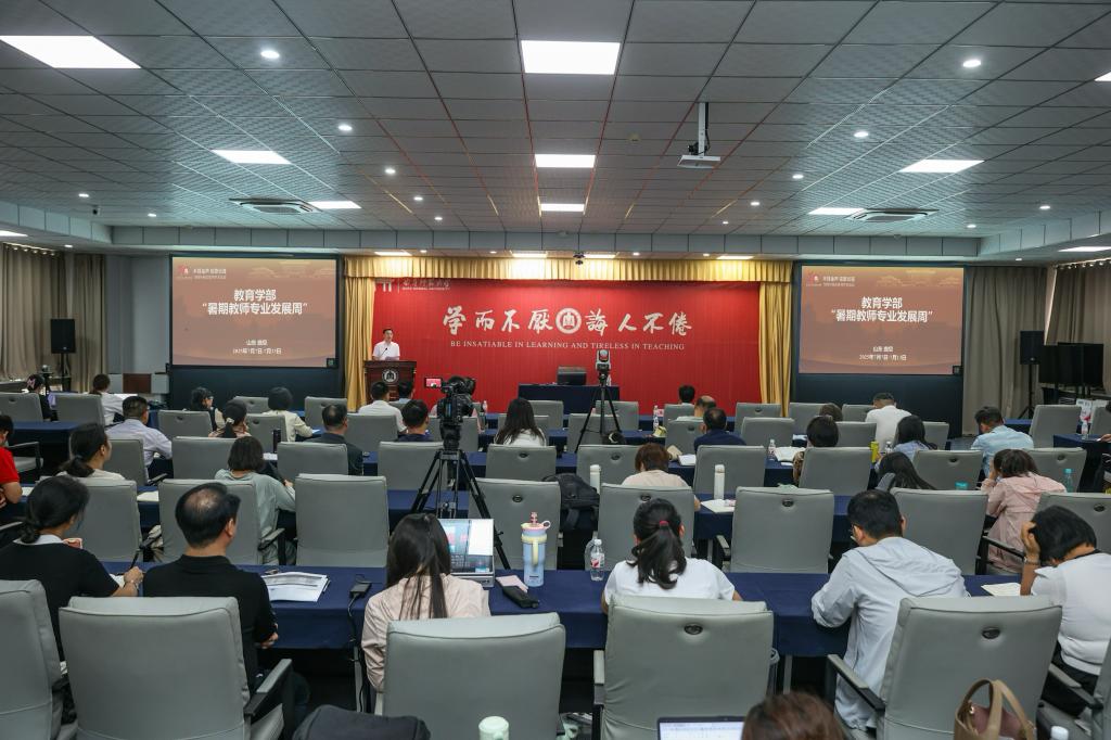 据悉,教育学部2025年“暑期教师专业发展周”活动旨在利用暑假第一周的时间,邀请国内知名学者来校讲学,主题涉及前辈学者教育思想、素质教育思想新发展、教育价值话语、教育科研论文质量提升、中国现代性问题、教师培养改革、社会科学研究原则与方法、学生核心素养培育、中国教育经验文化诠释、中国教师发展两重性构建等重要论题,有力促进学部教师拓宽学术视野,提升科研能力,助力学部学科建设向更高水平迈进。