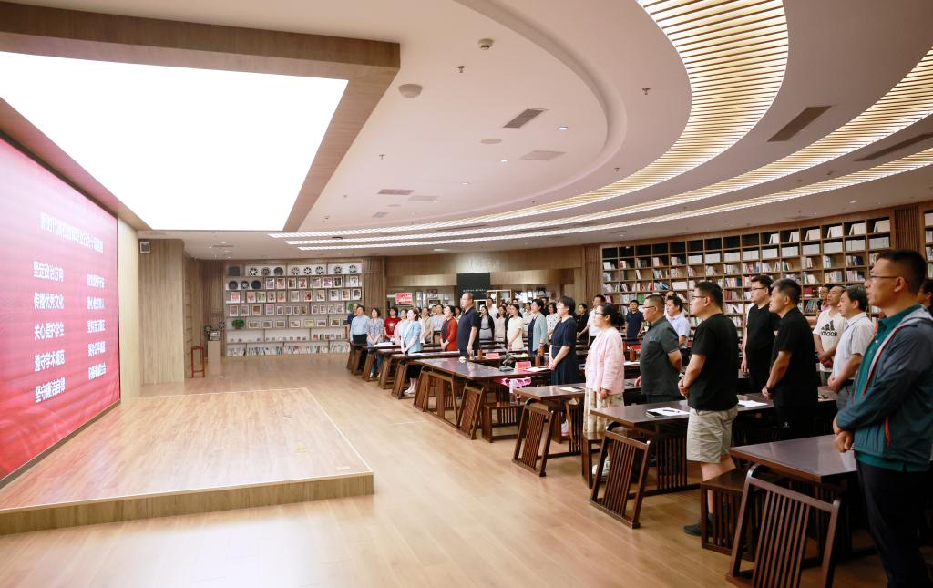现场全体教师在徐瑞教授的带领下共读《新时代高校教师职业行为十项准则》,进一步明晰育人方向,为构建风清气正的教育生态、培育“四有”好老师筑牢思想根基。活动最后,全体教师集体参观教育部师德师风建设基地——中国教师博物馆,感悟师德,传承匠心。