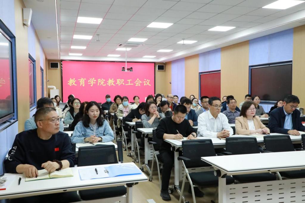 全体教职工参加会议,教育学部党委书记尹树林主持会议。