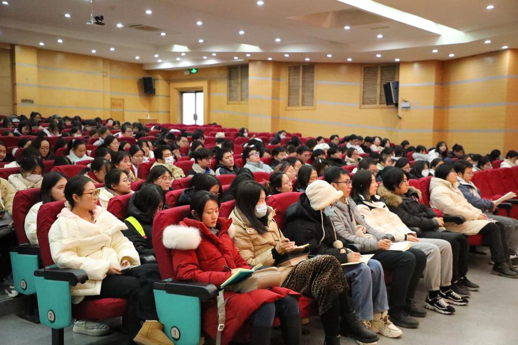 良好形象,充分展示新时代大学生昂扬奋进的精神面貌。同时,他希望同学们能从个人成长成才的角度看待实习工作,把教育实习视为一种特殊的社会实践,在努力提升专业素养和实践技能的同时,努力做到“三个学会”,促进个人更好的成长成才、服务社会:一是学会社会交往,学习掌握各种社交礼仪,为走出校园适应社会奠定基础;二是学会换位思考,做好自己的事,懂得理解和包容,努力构建和谐的人际关系;三是学会分析解决问题,在实践中不断提高发现问题、分析问题和解决问题的能力。他还提醒同学们要利用好接下来的寒假,认真做好目标规划,并结合个人实际,补短板、强弱项,为实现高质量就业做好准备。