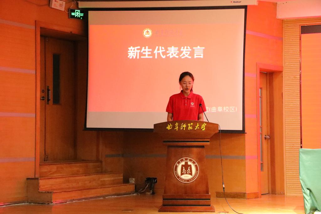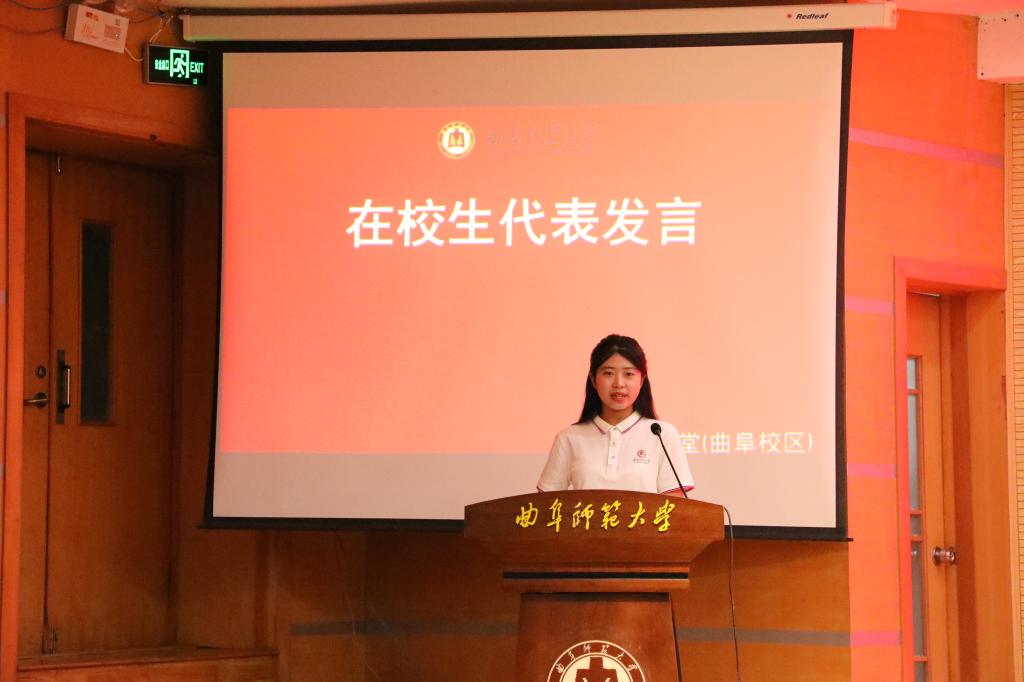 典礼上,在校生代表2021级教育学专业丰晓雪发言。她回望大学生活,并为新生们分享了三个关键词:梦想、学习和勇气,并结合自身学习生活经历,鼓励同学们端正态度,勤奋学习,积极参与科创赛事、社会实践和志愿服务等,培养自身的各方面能力,努力成就更好的自己。