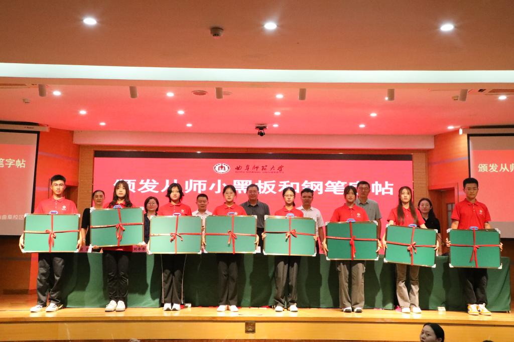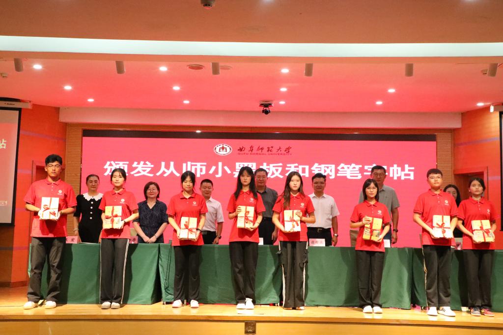 随后,领导老师们为2024级新生代表颁发从师小黑板和钢笔字帖,并希望同学们能够领会女子足球直播