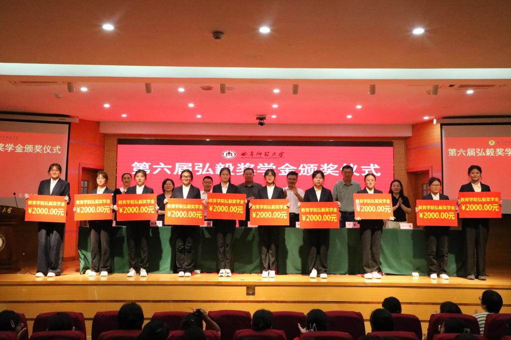 第六届弘毅奖学金获奖学生名单:王梓晗、高铭悦、胡馨雨、张晨露、曹雅铎、李婉仪、曾妮妮、赵云乐、隋荣、赵雨欣。主席台领导老师为获奖学生颁奖,并鼓励大家继续奋进,再创佳绩。