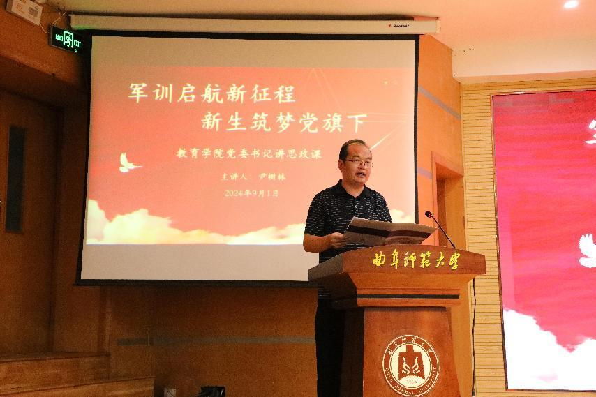 党委书记尹树林在孔子会堂为2024级全体新生讲授“军训起航新征程 新生筑梦党旗下”思政课。