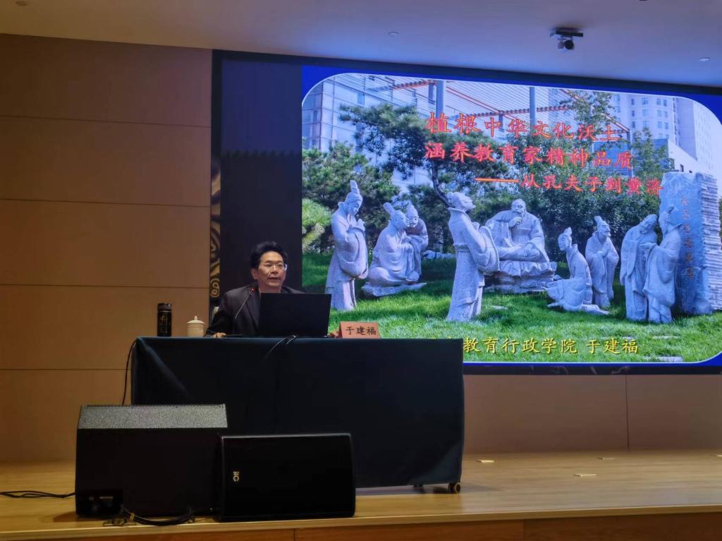 于建福教授认为,教育家精神代表着中国人对师道建设的精神追求,蕴含着鲜明的时代特色与文化特质。他从历史的角度回顾了古今先贤的教育事迹,并鼓励同学们读教育经典,品圣贤之道。随后,于教授从教育家精神内涵的六个方面逐一剖析讲解,强调要学会为人、为学、为师,心有大爱,做堪当新时代大任的青年学子。
