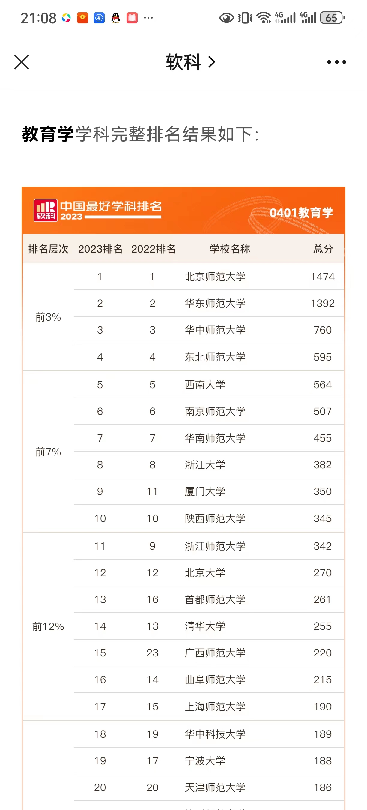 讯(通讯员:齐军)2023年11月8日,高等教育评价专业机构软科推出了2023“中国最好学科排名”榜单。曲阜师范大学教育学学科位居全国高校排名前12%,是我校唯一入围该层次的学科。这也是自2018年以来,曲阜师大教育学科连续六年保持前12%,稳步处于第一方阵。