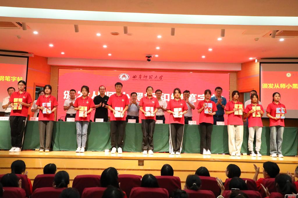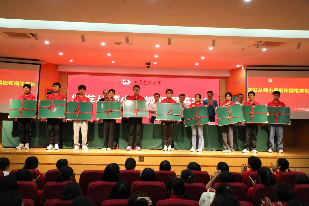 随后,出席活动的领导老师为2023级新生代表颁发了从师小黑板和钢笔字帖,并希望同学们能够珍惜女子足球直播