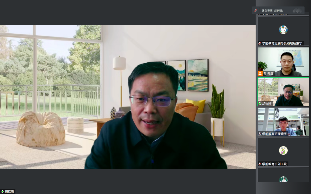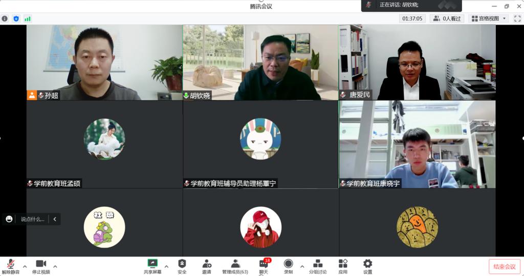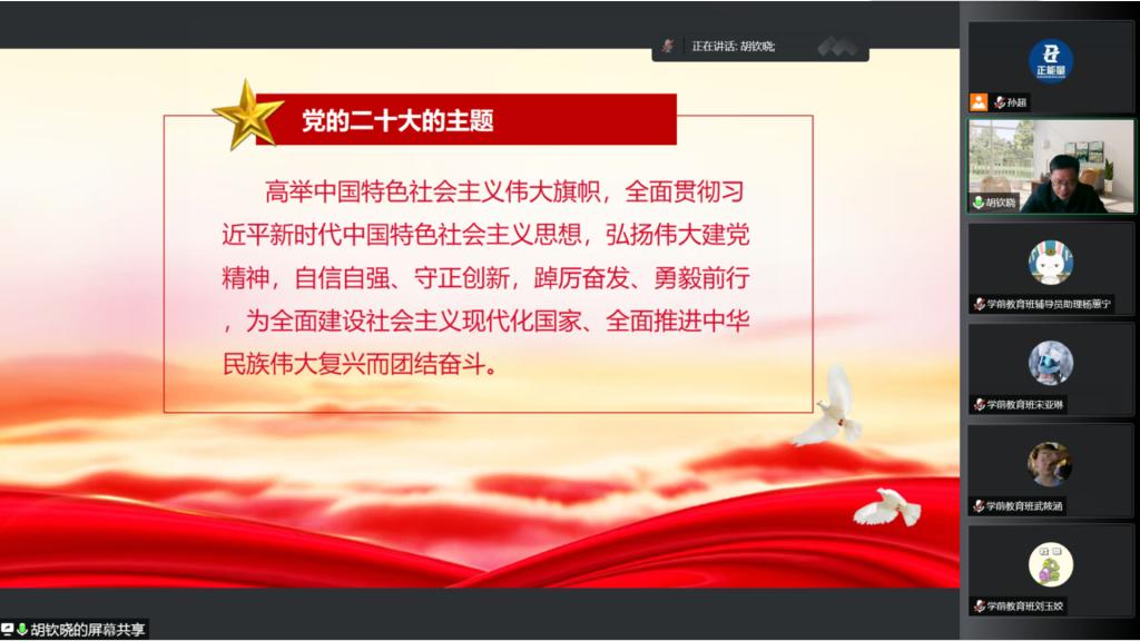 院长唐爱民主持宣讲会,党委副书记孙超和2022级学前教育班全体本科生收听宣讲。宣讲会通过线上方式进行。