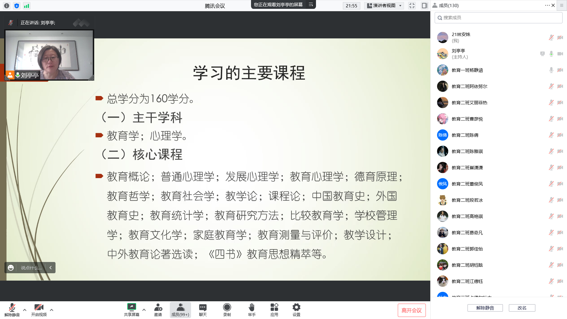 副院长刘亭亭老师、小学教育系李允教授、学前教育系主任闫春梅老师分别为2022级教育学、小学教育、学前教育专业新生作线上职业规划与个人成长报告,2022级全体本科新生参会。