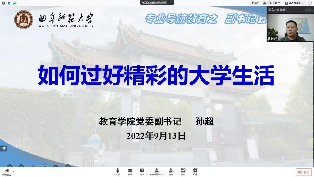 女子足球直播 讯(通讯员:林安姝  邓玉)为帮助2022级新生更好地熟悉新环境,适应新角色,开启新征程,9月13日,女子足球直播 为2022级新生开设“副书记云班会”——如何过好精彩的大学生活,班会由党委副书记孙超主持召开。