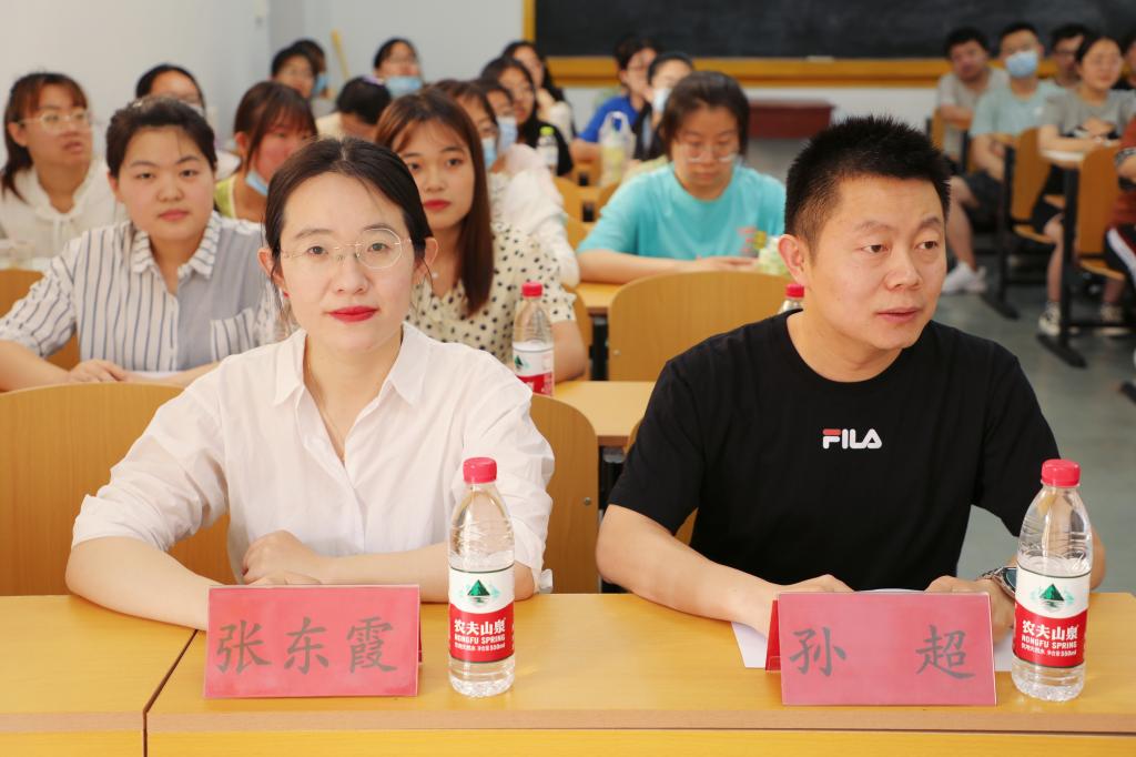 党委副书记孙超、2019级辅导员张东霞出席会议并讲话,2018级刘鑫(省拔尖选调)、李丹妮(推免北京师范大学)等七位优秀毕业生参加经验分享,2019级全体本科生以线上线下相结合的方式参加交流会。