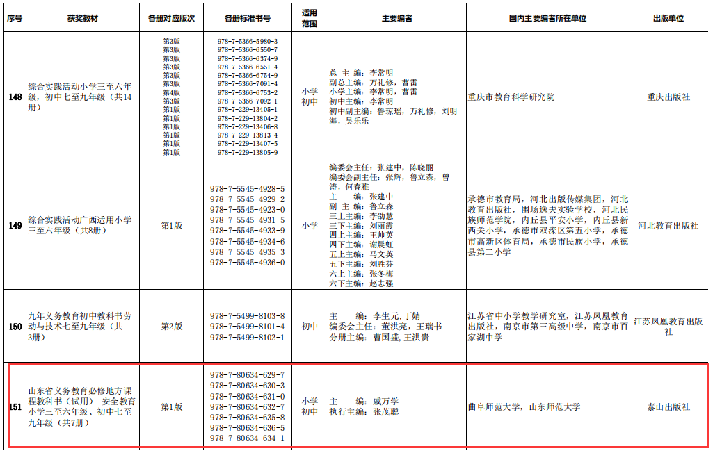 曲阜师大现场直播足球-女子足球直播讯(通讯员:宋阳)日前,国家教材委员会发布《关于首届全国教材建设奖奖励的决定》(国教材〔2021〕6号)。由曲阜师范大学戚万学教授主编的《山东省义务教育必修地方课程教科书(试用)安全教育小学三至六年级、初中七至九年级(共7册)》喜获首届全国优秀教材(基础教育类)二等奖。