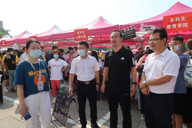 党委书记尹树林、院长唐爱民、党委副书记孙超、团委书记周长缨和2019级辅导员张东霞一行亲临迎新现场,与参与迎新工作人员亲切交流,全面了解省内新生报到情况。