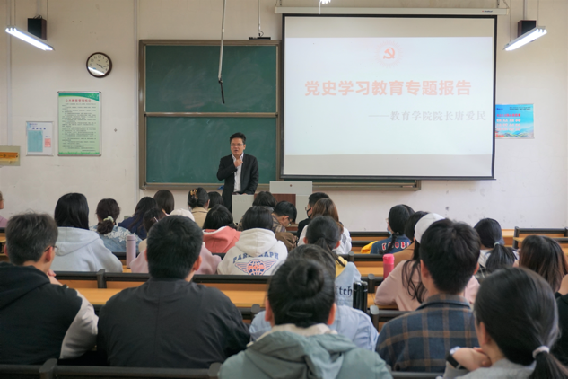 今年是中国共产党成立100周年,是党中央立足党的百年历史新起点,是统筹中华民族伟大复兴战略全局和世界百年未有之大变局。唐院长在报告会中指出:这不仅是百年辉煌的历史节点,同样是新的时代挑战。唐院长强调青年学生要重视党史学习,树立正确的党史观,发扬马克思主义优良学风,明确自己的学习要求、学习任务,把学习教育成果转化为努力学习、积极发展的前行动力,以优异成绩庆祝建党100周年。 唐院长为同学们深刻阐述了为什么要学习党史和怎样学习党史,并对同学们专业发展和学习规划指明了方向,帮助同学们明确当今形势,使同学们敢于积极面对挑战和把握机遇。报告会最后,唐院长再次强调曲园学子应牢记党的嘱托,坚定不移跟党走,努力成长为优秀的社会主义建设者和接班人。