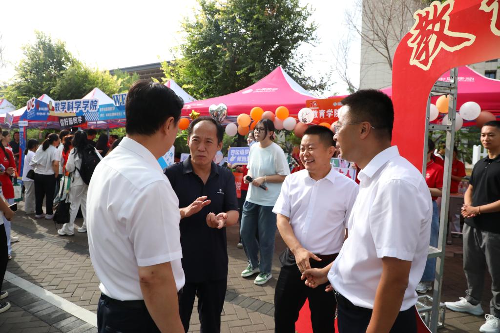 迎新工作现场,检查指导迎新工作,亲切慰问现场工作人员。