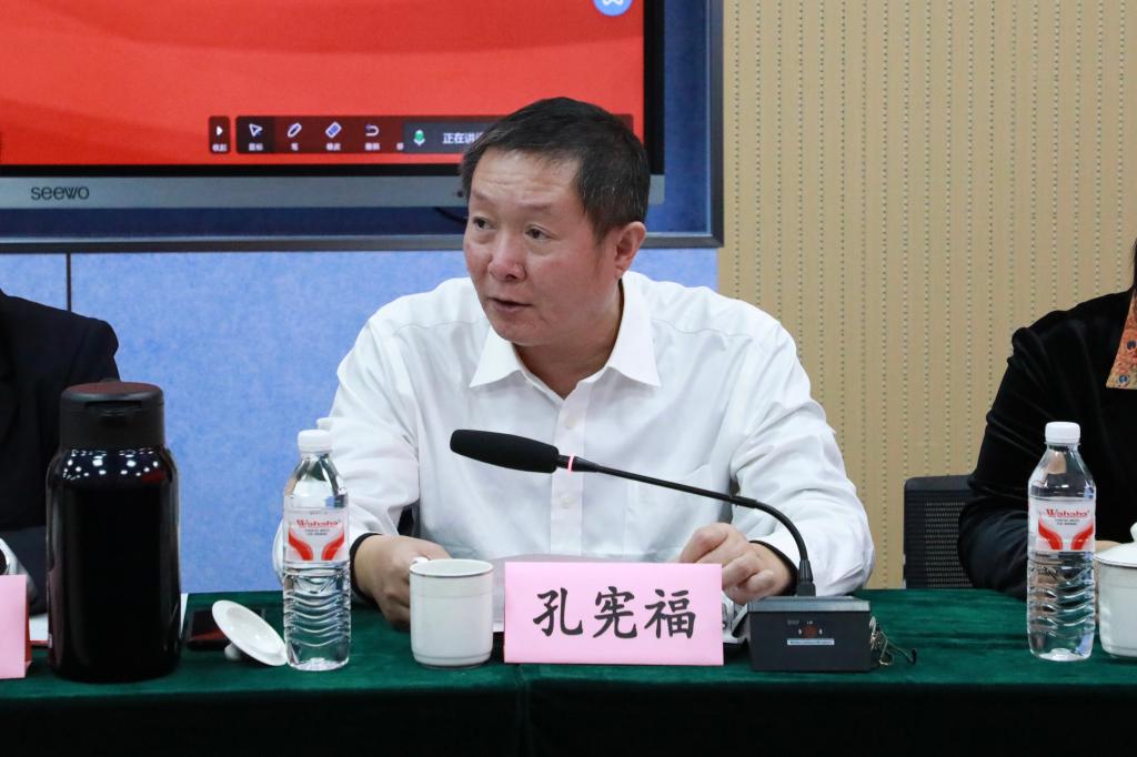 曲阜师范大学国内合作处处长、校友总会秘书长孔宪福宣读关于同意成立曲阜师范大学校友会女子足球直播