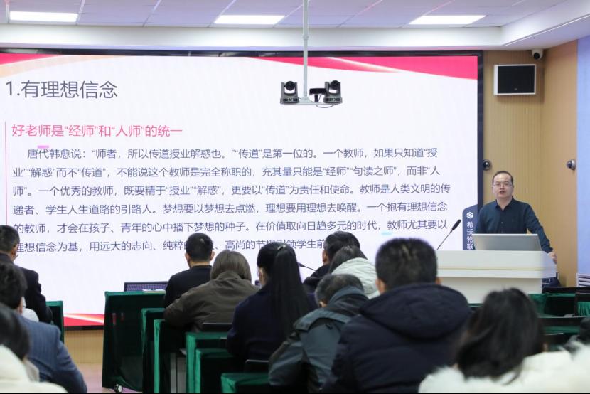 会上,尹树林以“好老师是民族的希望——坚持把教师队伍建设作为基础工作”为题,面向全院教职工讲授师德师风专题思政课。他指出,全体教师要深刻领会“四有”好老师标准,牢记“为党育人、为国育才”使命,做党和人民满意的好老师,自觉做共产主义远大理想和中国特色社会主义共同理想的信仰者与实践者。